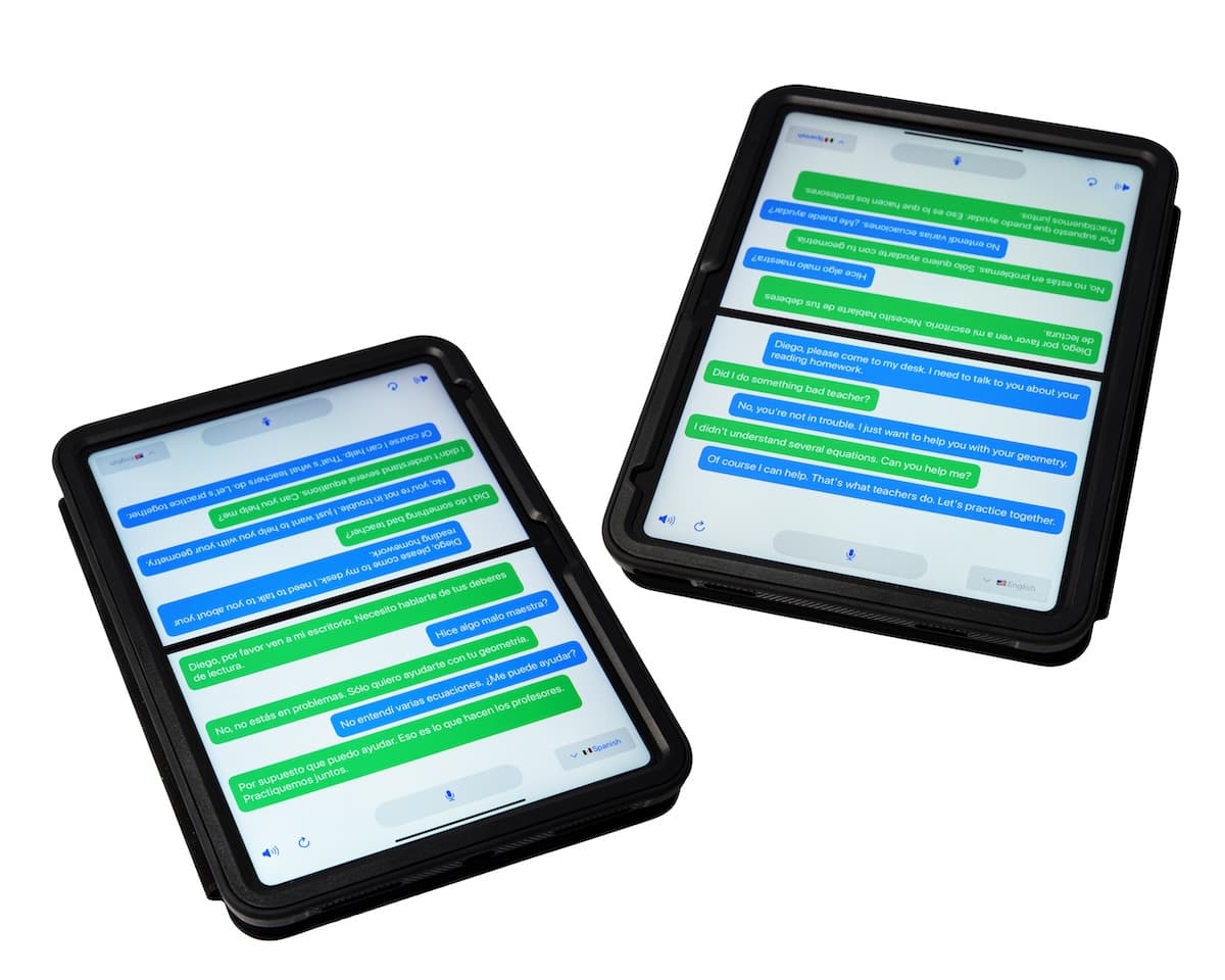 Bilingual students are often asked to translate for other children, staff, and even parents at conferences to discuss the learner's own progress! This takes away time from their own education and can force them to take on mature responsibilities too early, since they'll often be helping adults negotiate complex systems and deal with sensitive topics. By removing the necessity for the students to translate in many of these situations, the tablet can free them up to be kids.