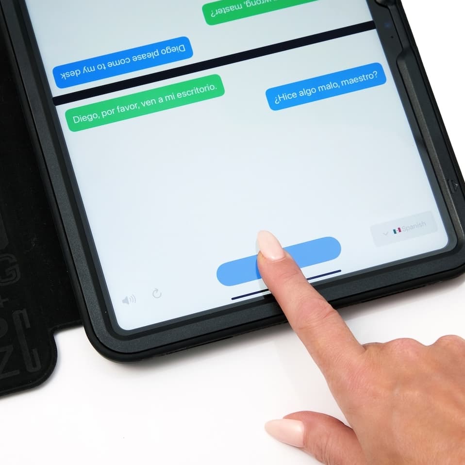 We know the last thing you need as a busy teacher is more technology that takes away from your teaching time, so the tablet works as soon as you open the box, with no account or wifi passwords needed. Moonshine Translator comes with a large screen and simple interface dedicated to student/teacher conversations, so no training is required to start using it, just press the button and speak.